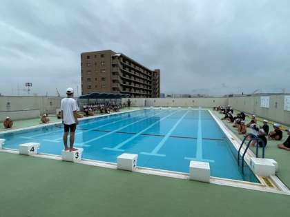 3時間目、激しく降っていた雨も弱まり、なんとかプールに入ることができました。