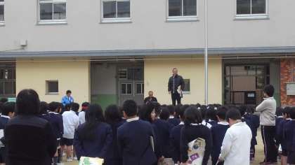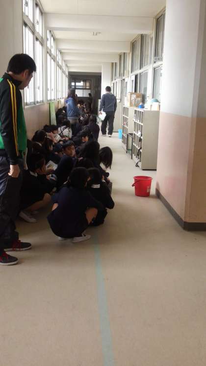 本日の3時間目に地震と津波が発生したとの想定で全校で避難訓練を行いました。