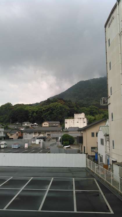 旅館『八千代』から見える金比羅は霧がかかって神秘的にも見えます。