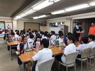 開舎式も終わり、お昼ご飯を食べています。お弁当美味しくいただいています。