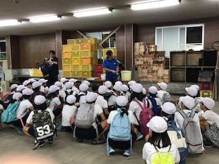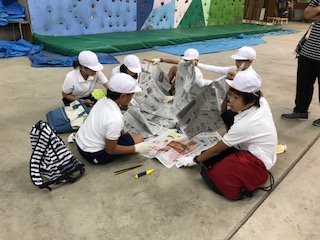 宿舎裏の体育館です。宿舎の方の説明をきいて、箸作りに挑戦!