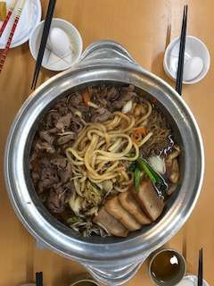 2日目の夕食は・・・なんと、但馬牛のすき焼きです!野菜もたっぷり、うどん入りです。今日は、めいっぱい活動したので、みんなもりもり食べました。