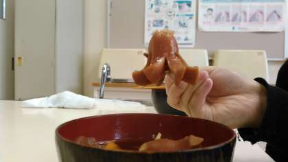 そこで、加工肉のソーセージを使って肉じゃがならぬ『ソーじゃが』にしました。それぞれのグループで輪切りにしたり、乱切りにしたり、タコさんにしたり。