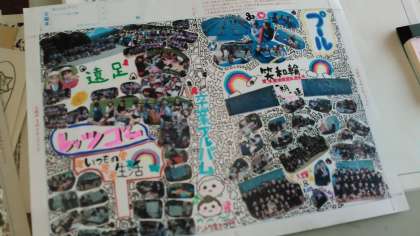 その中でアルバム作りをしているのですが、自分たちが作る写真のページがあります。上の写真です。自由ページ作り担当がみんなに見せ、歓声が!ところが、印刷範囲からほんの少しはみ出て、やり直しをしたほうがよりいいものができることがわかりました。