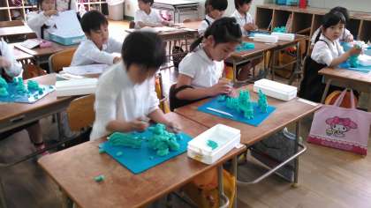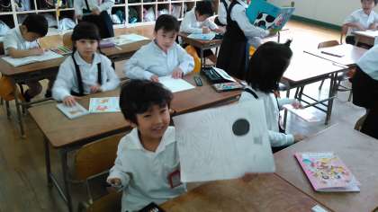 休み時間になると学校を探検していろんな学年の友だちをつくっている1年生。