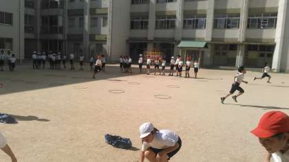 運動場には100人近くの4・5年生が。