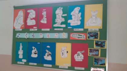 北校舎東側階段2階踊り場は4年生の学年掲示。