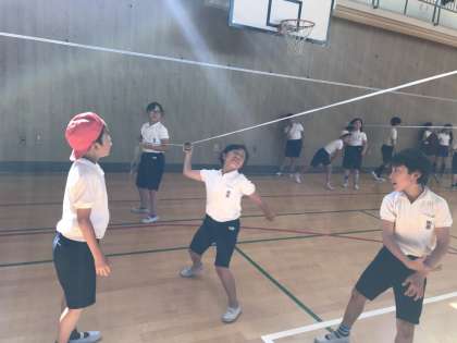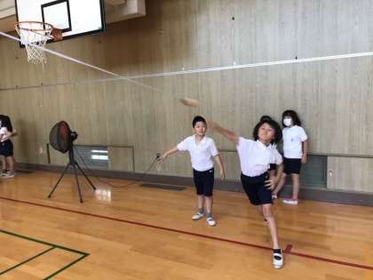 4年生は今日も『リズムランニング』と『とにかく投げてみよう』に取り組みました。