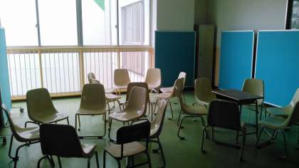 そうじをし、椅子を円く並べると…。