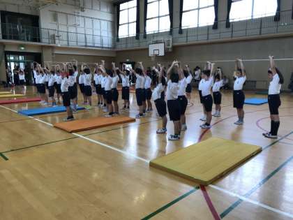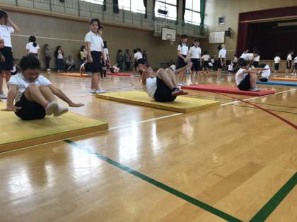 たくさんのおうちの方が見てくださっている中、『いつも通り』のリズムを使った体育。