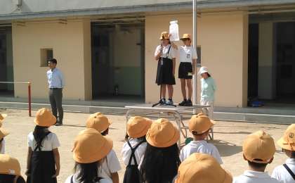 朝会で環境委員会の5年生が取り組み方や、内容を伝えました。
