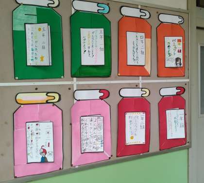 環境委員会のみなさんがそれぞれのクラスに素敵なメッセージをプレゼント。
