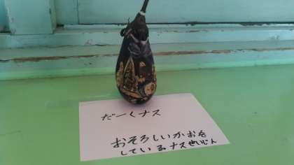 そこで、そのナスを教室に持ってあがり、飾ることにしました。