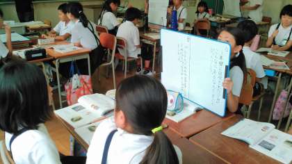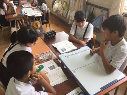 昨日、4年生での取り組みを紹介しましたが、5年生でも、ホワイトボードを使って学びあいをしました。