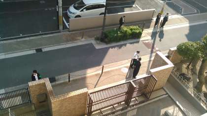 低学年が下校する14:30正門の前には大正警察の方がたってくださっていました。