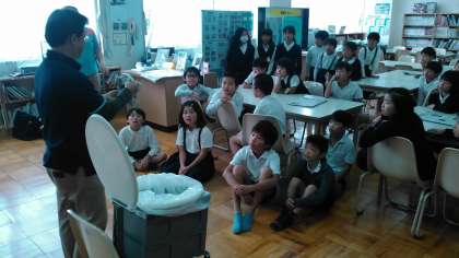 今日は地域、区役所、消防、学校がチームになって取り組む「防災学習」