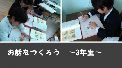 先日5年生が取り組んでいた『物語を作ろう』ですが、4年生、そして、今日は3年生も取り組んでいました。