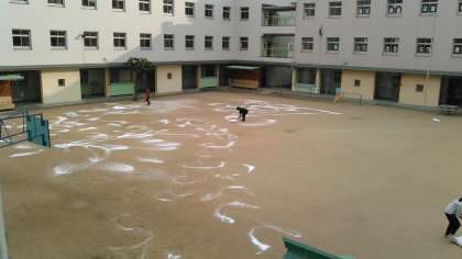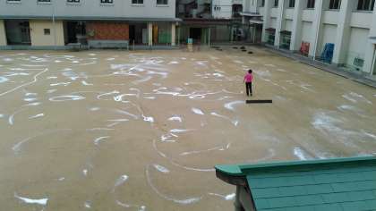 運動場の砂ぼこり防止と凍結防止のため3ケ月に一度の運動場にがりまきを行いました。雨が降っていたのでとけるのが早く、明日には運動場も使えそうです。