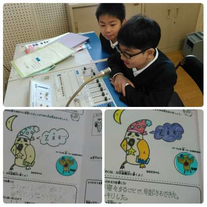 環境委員会のみんなは1学期から準備し、今回、委員会発表と早寝早起きアンケートに取り組みました。