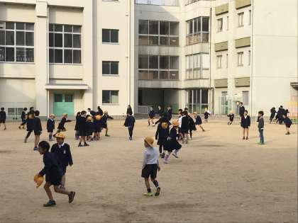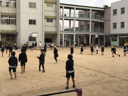 1時間目終了後の休み時間。まだ冷えるし、すぐに2時間目も始まるため、遊ぶ人は少ないだろうと運動場を見ると、たくさんの子どもたちが遊んでいました。「1秒でも無駄にしたくない!」という感じで、チャイムが鳴るまで、本当に楽しそうに遊んでいました。