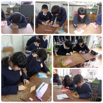 と見てみると、折り方が分かる人の手元をじっと見て、同じように作ろうとしています。