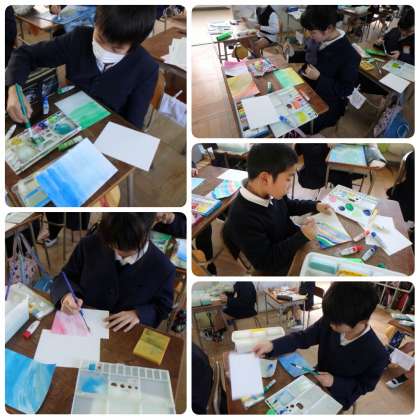 そして、一組では、葉書サイズの画用紙に思い思いのグラデーションをつくりました。