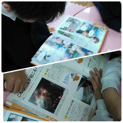四年生では、阪神淡路大震災のときの映像を見て、どんなことが起こるかもしれないかを見て、自分たちの行動をシミュレーションしていきました。