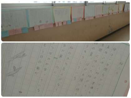 3階の廊下を歩いていると、6年生の教室の前に原稿用紙が掲示してありました。