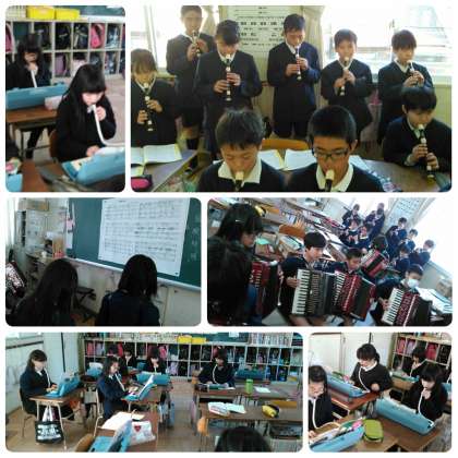 自分が選んだ楽器に休み時間も向き合い、今日、初めて全員で合わせました。