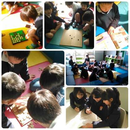 たくさんの三年生たちが本を読んだり、オセロをしたり、五目並べをしたりと、思い思いに過ごしています。