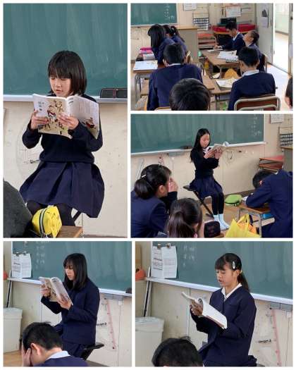 次々と前に出て、自分のお気に入りのシーンを読む五年生。