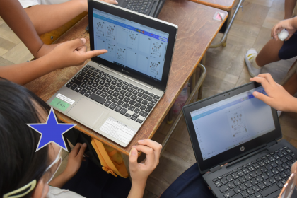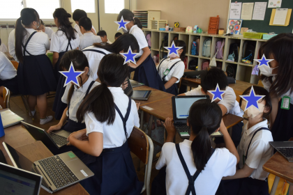 5年生は係活動の表をタブレットで作るようです。文字だけでなく、顔写真も入れ、レイアウトも自分たちで考えていました。得意な子が教えながら進めていましたよ。