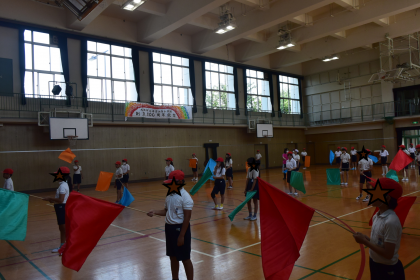 先生から、持ち方を教えてもらいました。一口に持ち方と言っても、順手、逆手、手の幅、フラッグの位置など、何通りもパターンがあります。