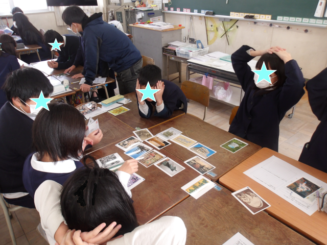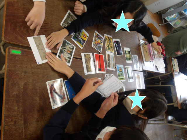 「アートカード」(芸術作品の写真)を見て、感じたことを読み札にして、カルタをしました。