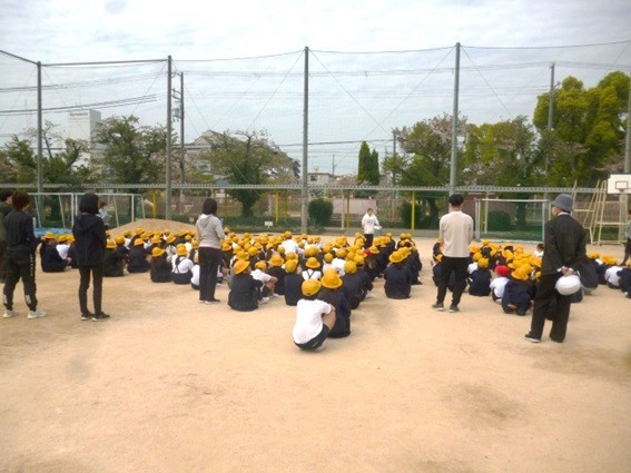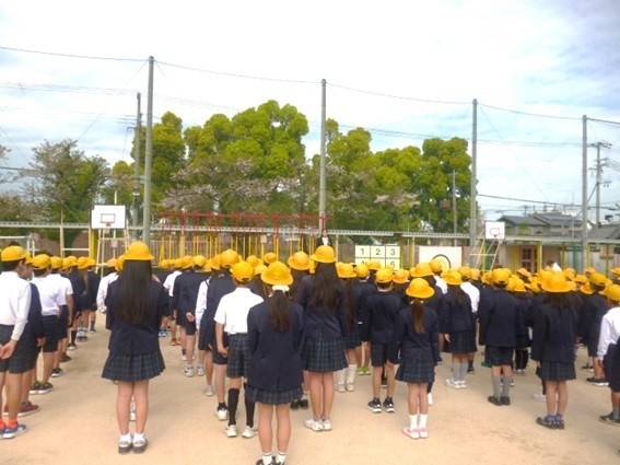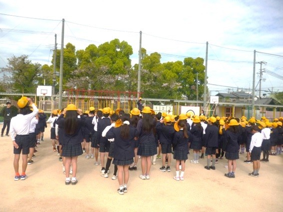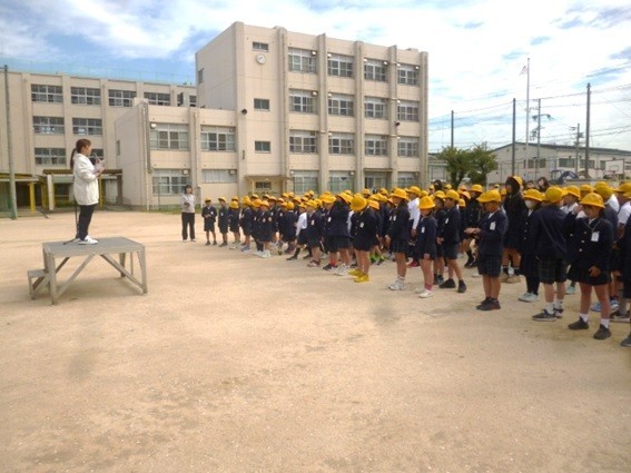 理科室から出火したことを想定した避難訓練が行われました。子どもたちは素早く運動場に避難ができました。整列後、生活指導の先生から「火の粉が降ってくるんだよ」「火事の時の煙を吸うと命にかかわるよ。」など帽子をかぶることやハンカチで口や鼻を覆って低い姿勢で逃げることなどの意味について指導がありました。避難の時の「お、は、し、も」の合言葉もみんなで確認しました。校長先生からは「今日のみんなの避難の仕方は素晴らしかった。避難の訓練は大切だね。本当に災害が起こったとき、自分の命を自分で守れる子どもになろう。」とお話がありました。