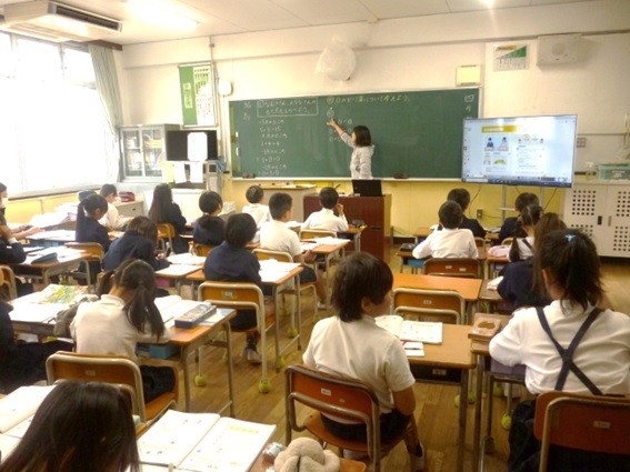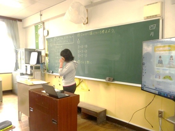 3年生は算数で0のかけ算について学習しています。先生が、0のかけ算を黒板に書くと丁寧にノートに写して計算を考え、たくさんの子どもたちが発表しました。「0は何をかけても0ですね。」という言葉に大きくうなずいていました。