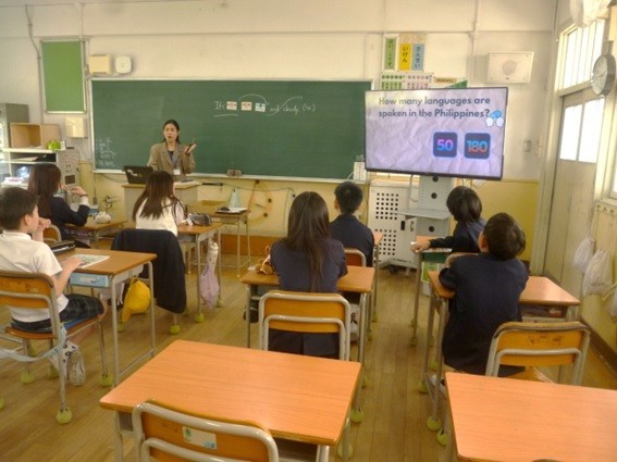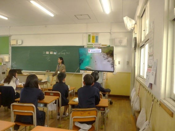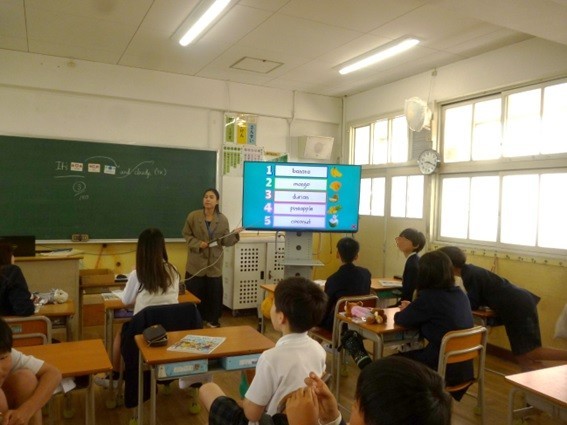 6年生は英語の学習をしています。今年は新しい英語のネイティブの先生(CNETシーネットの先生と呼びます)が来られました。シーネットの先生の自己紹介がとても工夫されていて楽しい授業でした。出身の国のフィリピンの有名なくだものクイズがありました。ベスト5を子どもたちはどんどん正解していくのに驚きました。また、出身地セブ島の海や珍しい動物などを写真や動画で説明してくれて、子どもたちは大変興味を持って学習していました。
