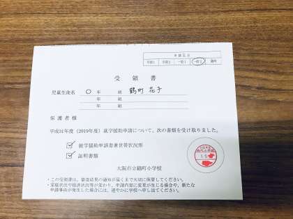 すでに申請されている場合は、学校から写真のような「受領書」をお渡ししていますので、ご確認ください。