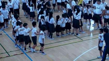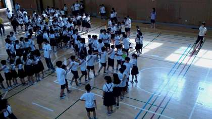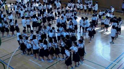 じゃんけんをして、勝った人の後ろにつながっていきます。