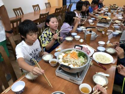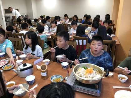 林間学習 公開日 2019/07/23 更新日 2019/07/23 その他 入浴を済ませ、夕食です。 1日目は「かもなべ」です。とてもおいしいようで、みんな勢いよく食べてました!!ご飯もおかわり連発です! いいね(0)