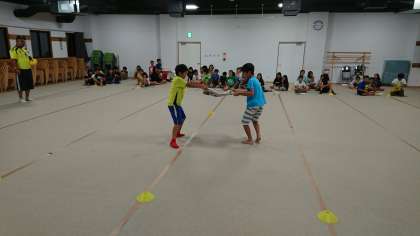 活動班対抗でさまざまな種目を行い、競いあいます。リレーや手押し相撲トーナメントなど工夫された競技を戦いました!!