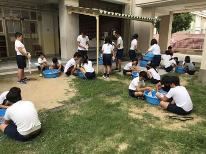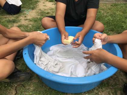 運動会の練習で土まみれになった体操服を自分たちで洗濯しました。