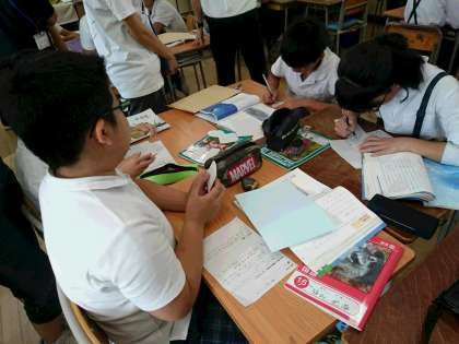 国語科の学習6年 公開日 2019/10/10 更新日 2019/10/10 その他 6年生は「海の命」という物語文を学習しています。 今日は、これまで学習したことをもとに、ポップづくりに取り組みました。 班で上手に役割分担をしていて、どの子も活躍していました。 素敵なポップができあがりそうです。 いいね(0)