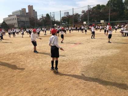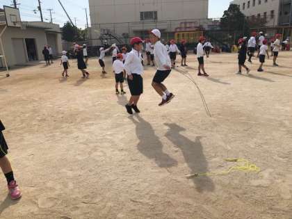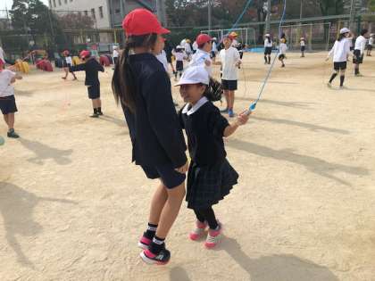 1年生から6年生まで順番に跳び、タイムを競う「みんなでつなぐ早跳びチャレンジ」もあります。