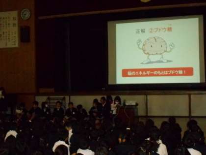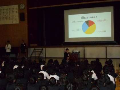 12/5 児童集会・・・ 公開日 2019/12/05 更新日 2019/12/05 その他 学校保健委員会で発表した内容を全校児童に広めるために、児童集会でも発表しました。 健康委員会と給食委員会、運動委員会がそれぞれ分かれて発表しました。生活習慣について、テーマは「睡眠」「食事・朝ごはん」「運動・ストレッチ」です。 とても工夫して、分かりやすい内容でした。子どもたちの心にも届いているかな? いいね(0)