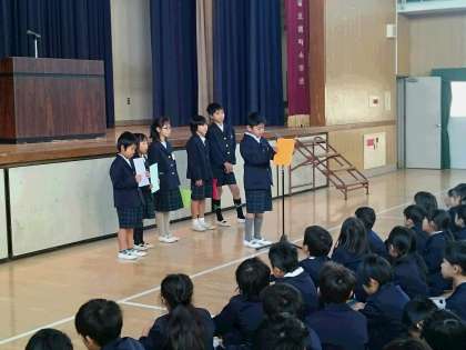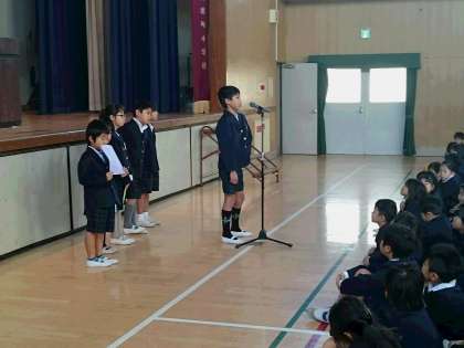 2学期終業式 公開日 2019/12/25 更新日 2019/12/25 その他 今日は終業式でした。 終業式では、各学年の代表児童から、2学期にがんばったことや、これからがんばりたいことなどの発表がありました。 また、先日のつるまち漢字、計算チャレンジで合格した児童へは、認定証を渡しました。 子どもたちののがんばりがたくさん見られた2学期でした。 いいね(0)
