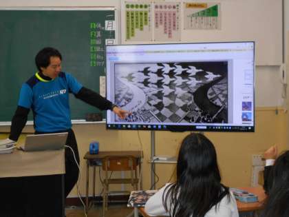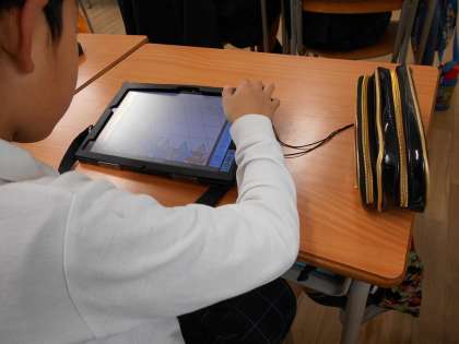 1/16 5年 算数の学習(2)・・・ 公開日 2020/01/16 更新日 2020/01/16 その他 5年生が、算数「図形の角を調べよう」の単元で、タブレット操作し、「しきつめ」の学習をしていました。 なかなか、手慣れてきています。 いいね(0)
