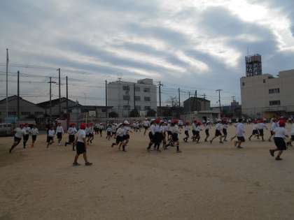 体育の時間も運動場を走って、体力作りに励んでいます。