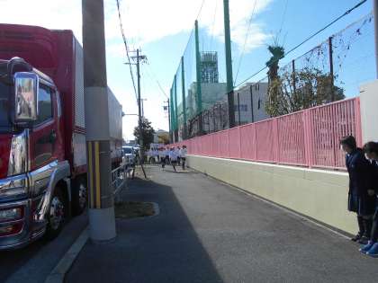 「1・2年女子⇒1・2年男子⇒3・4年女子⇒3・4年男子⇒5・6年女子⇒5・6年男子」の順に、学校外周を走ります。