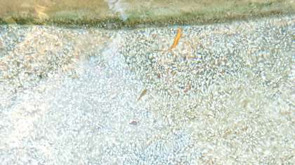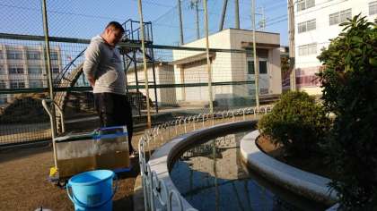 卒業式を前に、虹池(虹の形をしていることからそう呼ばれています)にお引っ越しすることにしました!大きな池で、これからも元気に泳いでほしいです!